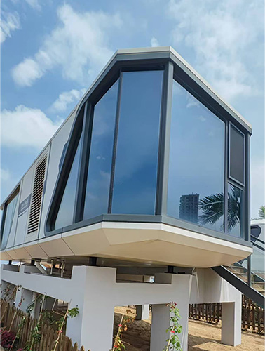 在主题公园中,太空舱移动房屋可以作为特殊的住宿设施,里面卧室、盥洗间、淋浴间、卫生间、活动间精巧布置,门窗、灯饰、窗帘、电视均为智能化声控。透过玻璃钢幕墙室外风景一览无余,为游客提供独特的住宿体验,让他们感受到与众不同的旅行乐趣。